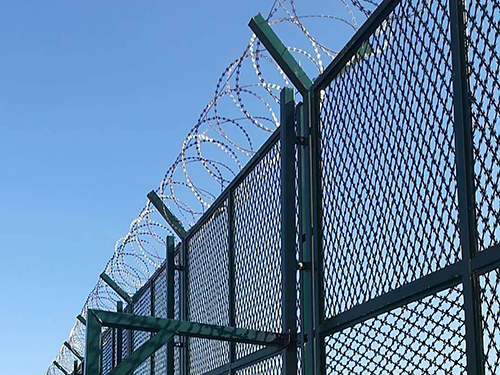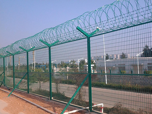 - 【產(chǎn)品簡介】:機(jī)場監(jiān)獄護(hù)欄是由V型支架立柱,加強(qiáng)型焊接片網(wǎng),安全防盜連接件和熱鍍鋅刀片刺網(wǎng)組成強(qiáng)度和安全防御性級別很高。近年來,被廣泛應(yīng)用在機(jī)場,軍事基地等高安全場所。材質(zhì):優(yōu)質(zhì)低碳鋼絲絲徑:5mm網(wǎng)孔:50mmX100mm,50mmX200mm立柱:60x80mm鍍鋅方管